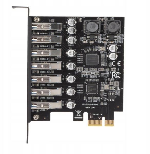 Kontroller Adapter Kártya 7-PORT Pci-e 1XNA 7XUSB 3.2 5GBPS Alaplaphoz (2612220119211)